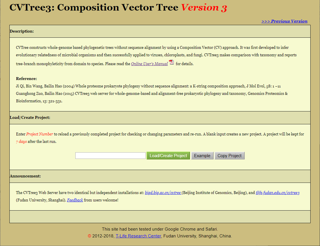 CVTree3: Composition Vector Tree Version 3 Description: CVTree constructs whole-genome based phylogenetic trees without sequence alignment by using a Composition Vector (CV) approach. It was first developed to infer evolutionary relatedness of microbial or